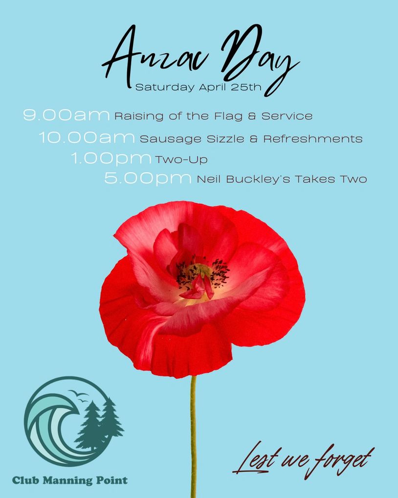 Club Manning Point will be commemorating Anzac Day with a number of events throughout the day.
